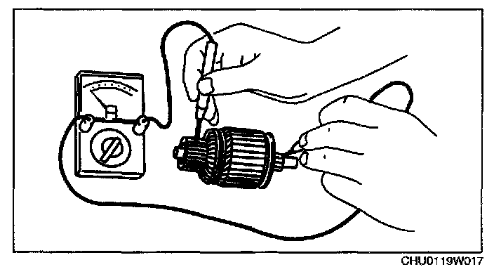2. Verify that there is no continuity between the commutator and the shaft using a tester.