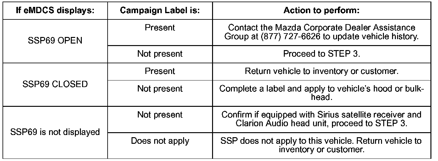 Home >> Mazda >> 2007 >> 3 L4-2.3L >> Repair and Diagnosis >> Technical Service Bulletins >> Recalls >> Generals >> Campaign - Audio Unit Reprogramming for Satellite Signal >> Attachment II >> A. Vehicle Inspection Procedure