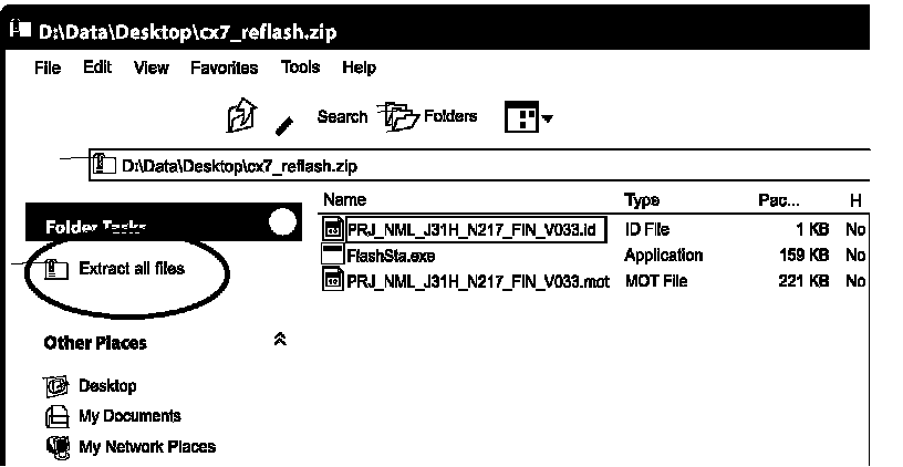 8. Navigate to the cx7_reflash.zip file on the Desktop and open it.