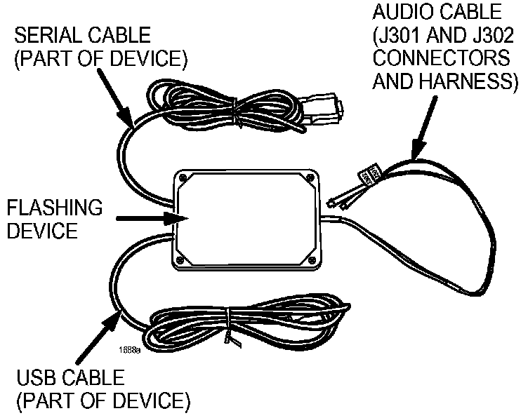 18. Disconnect the flashing device cables (# 301 and # 302) from the audio system. Disconnect the serial and USB cables from the PC.