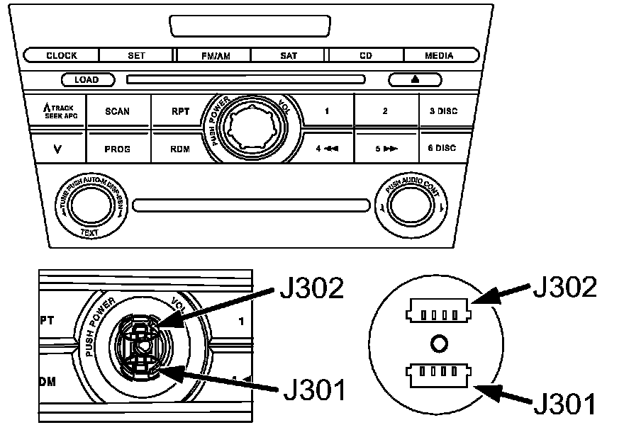 3. Verify the correct software version is loaded. Press and hold the MEDIA, Preset # 5, and Preset # 6 buttons simultaneously. The information/radio display will show the software version.