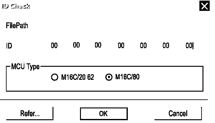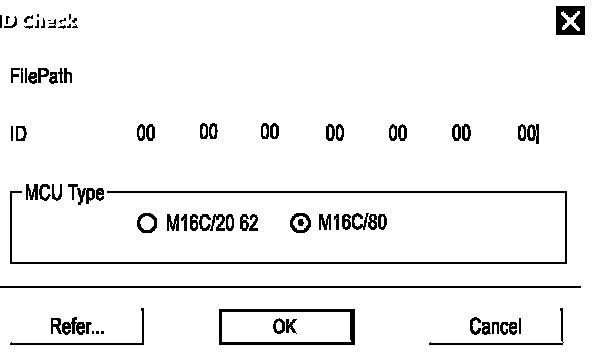 11. After entering all the information as specified, click "OK" on the "ID Check" window. The "M16C Flash Start"window will be displayed.