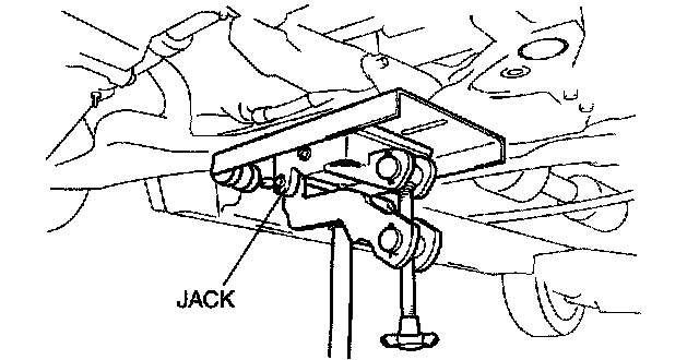 2. Support the front crossmember, front stabilizer, lower arm, and steering gear and linkage using a transmission jack.