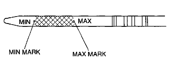 4. Remove the dipstick and verify that the oil level is between the MAX and MIN marks on the dipstick.