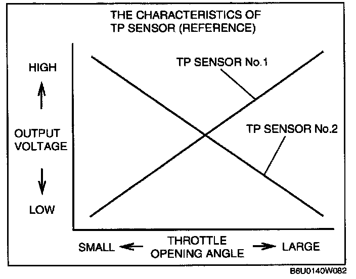 THROTTLE POSITION (TP) SENSOR INSPECTION[L3]CAUTION: This inspection procedure cannot be completed correctly if the accelerator pedal position sensor has a malfunction. Before performing this procedure, verify that any one of the DTCs (P2122, P2123, P2127, P2128, P2138) related to the accelerator pedal position sensor is not detected.