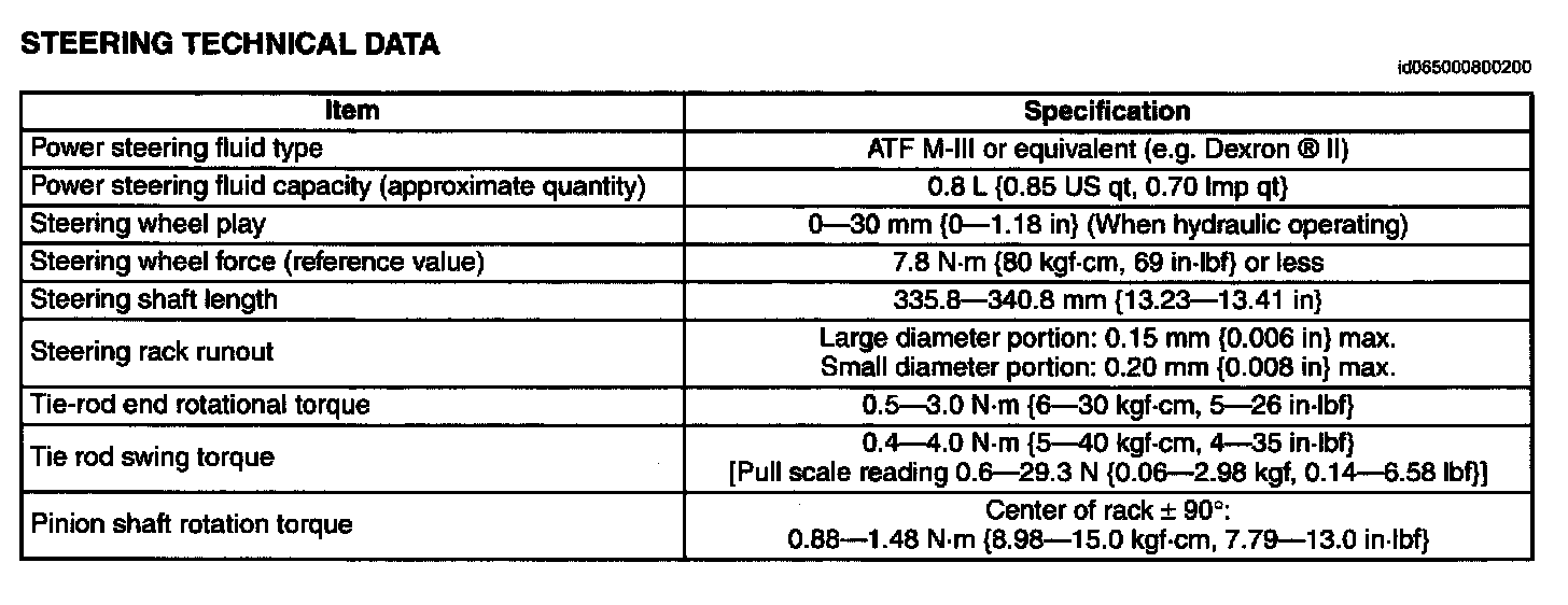 Steering Technical Data: