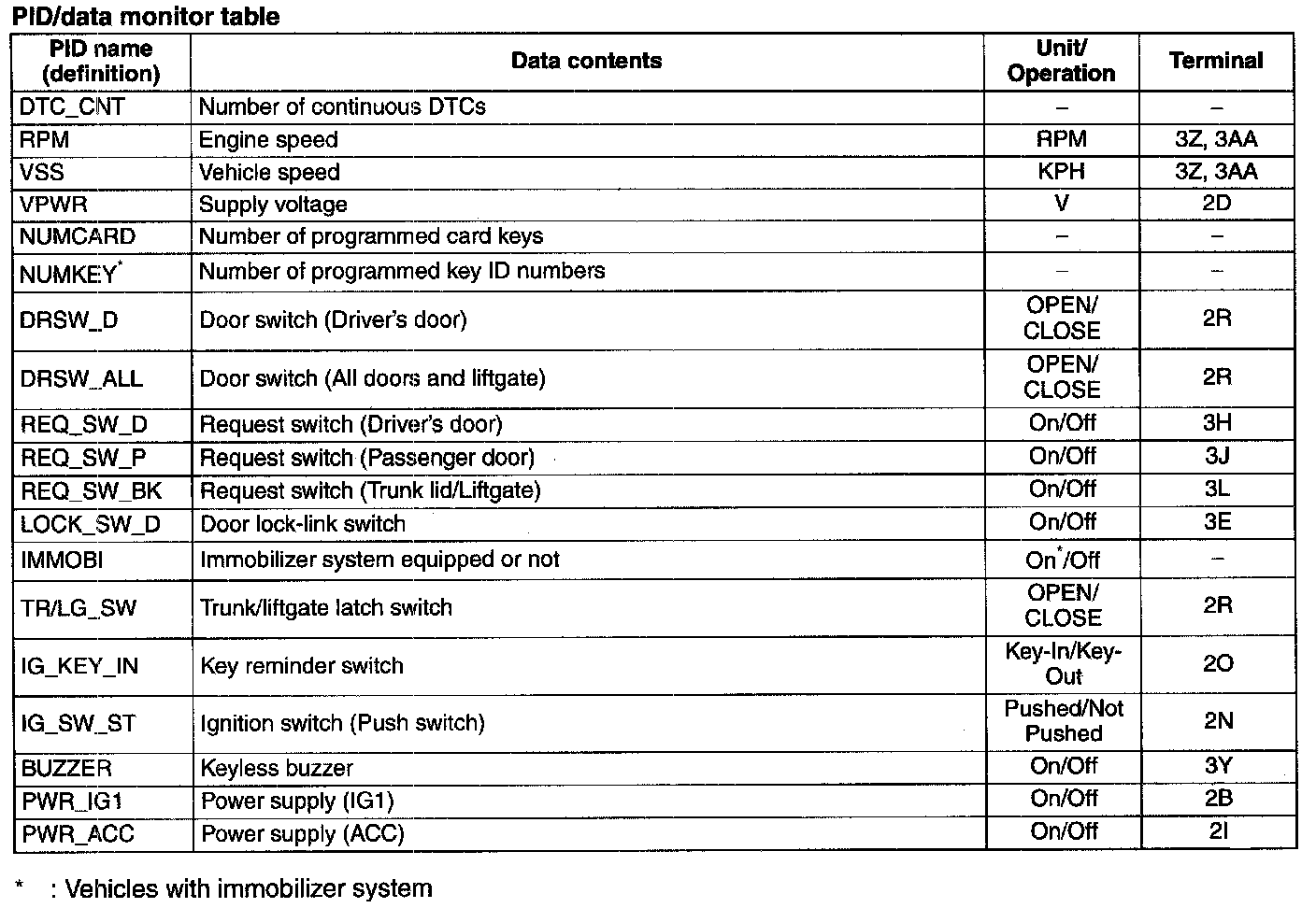 PID/DATA Monitor Table [ADVANCED KEYLESS SYSTEM]: