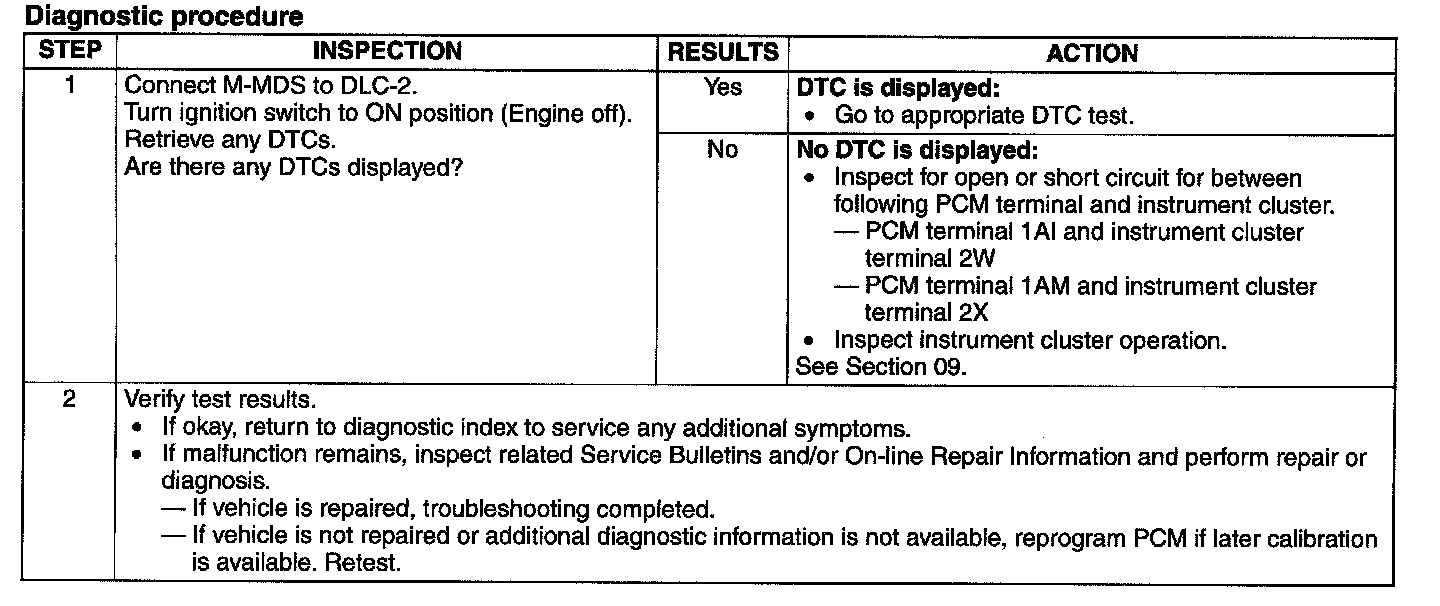 Malfunction Indicator Lamp: Testing and Inspection