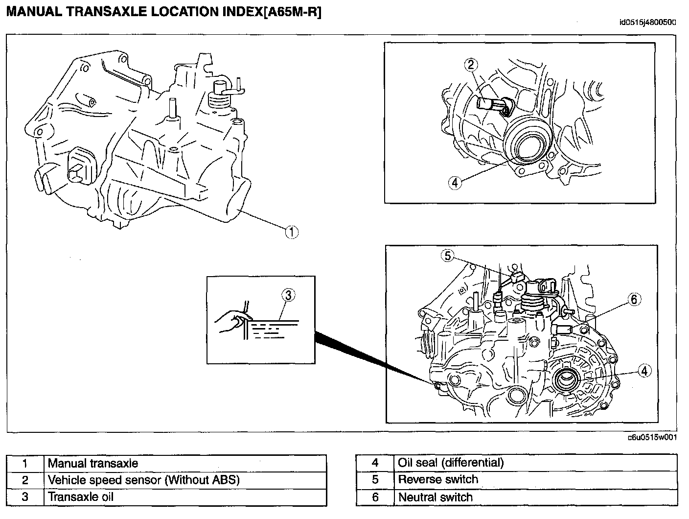 MANUAL TRANSAXLE LOCATION INDEX [A65M-R]