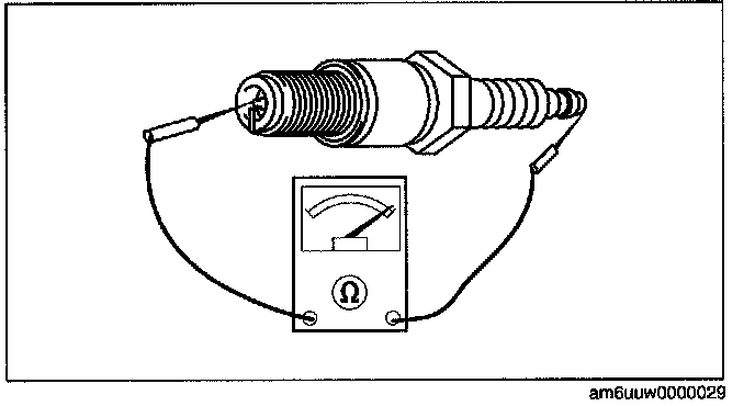 1. Measure the resistance of the spark plug using a tester as shown in the figure.