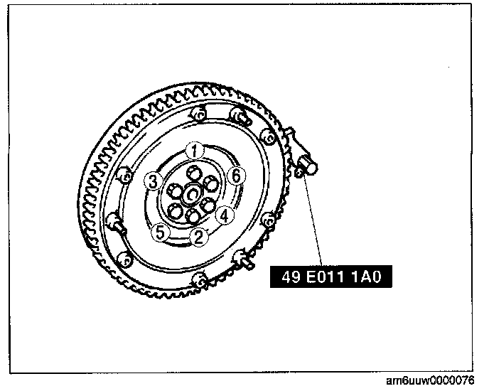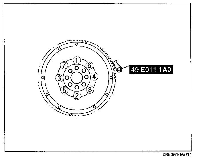 Gradually tighten the flywheel lock bolts in a crisscross pattern.