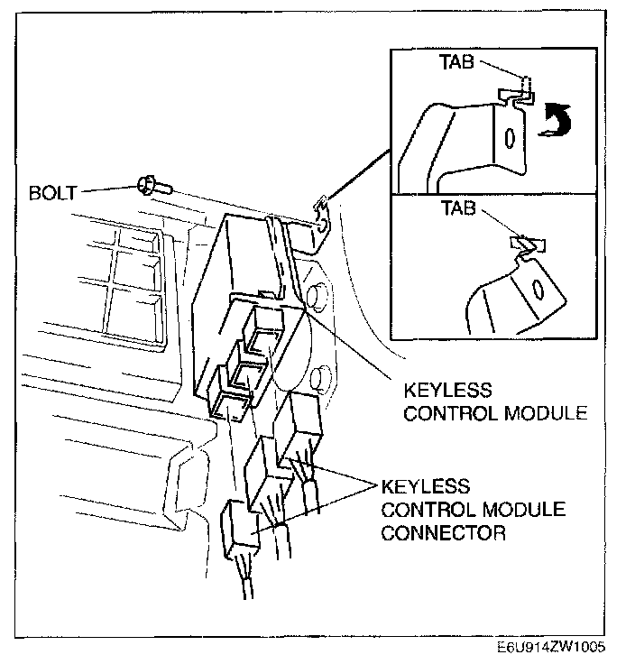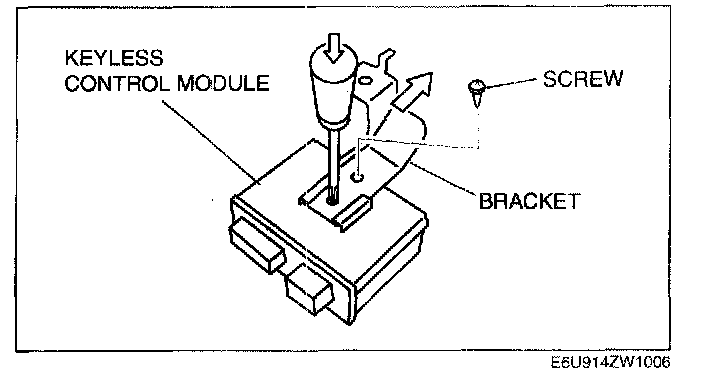 NOTE: The screw which fixes the keyless control module and bracket is for a body ground connection. Be sure to secure the screw when installing.