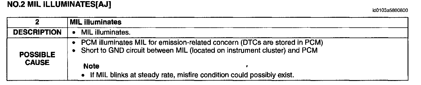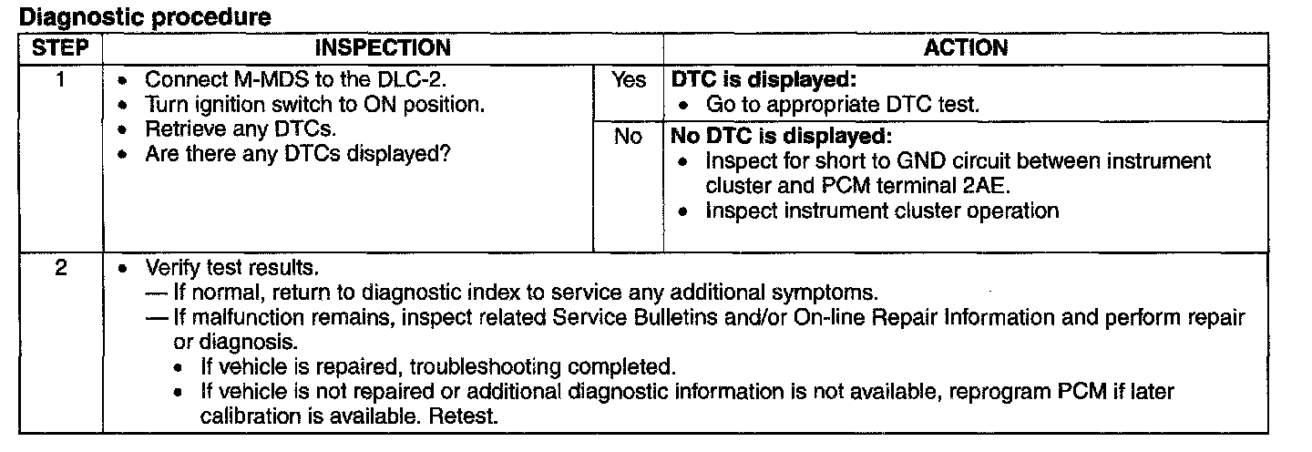 Malfunction Indicator Lamp: Testing and Inspection