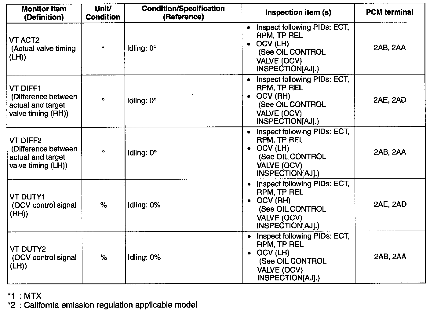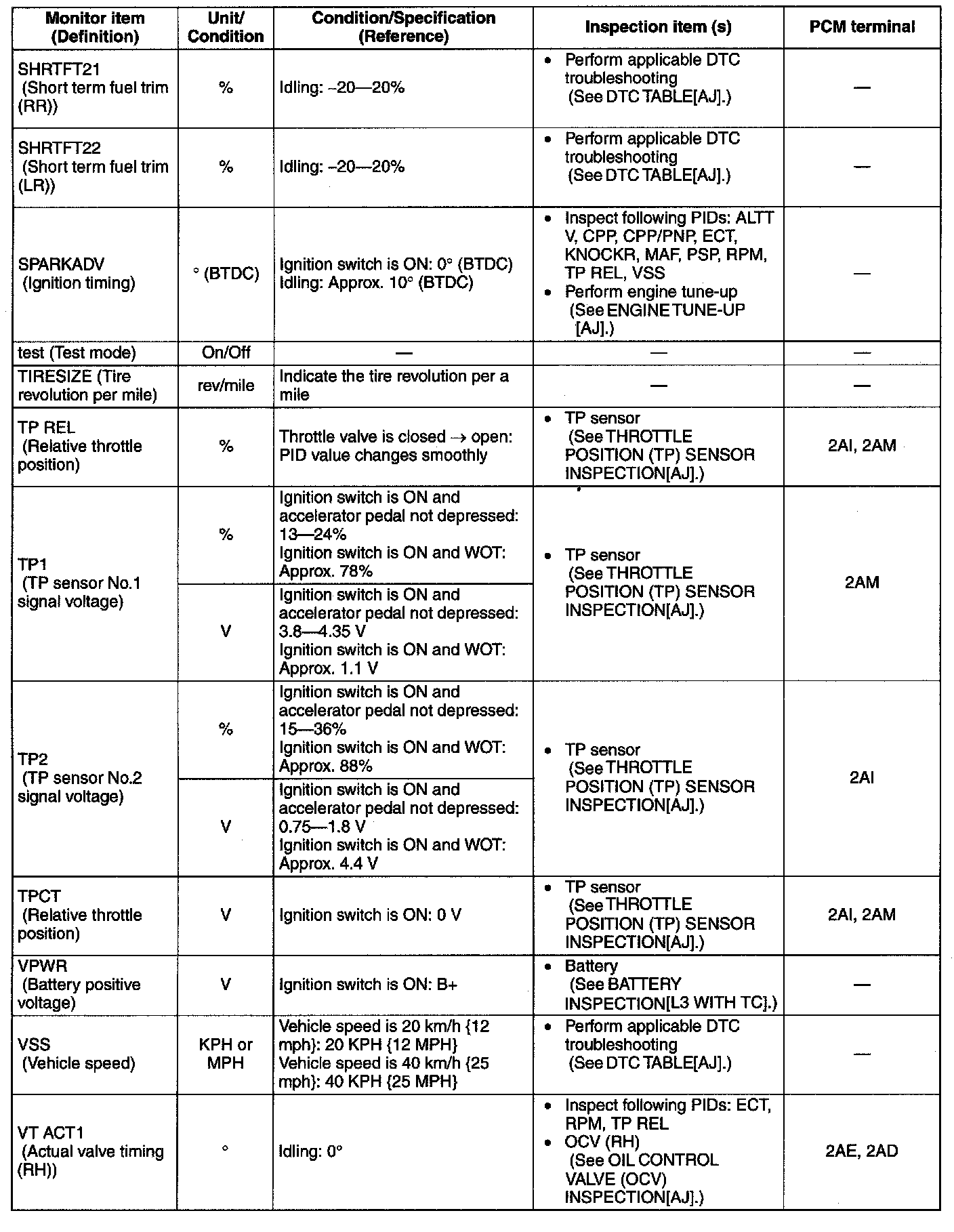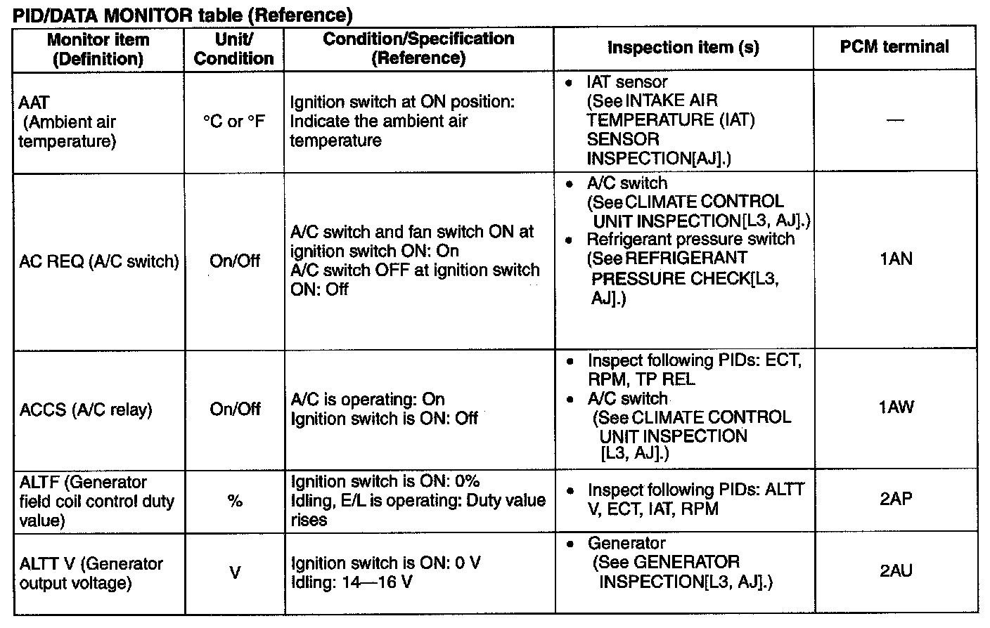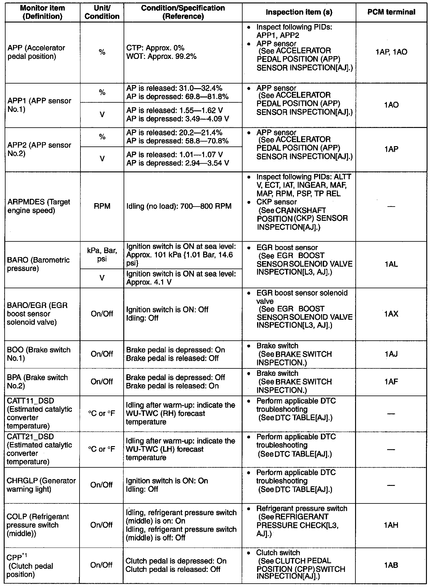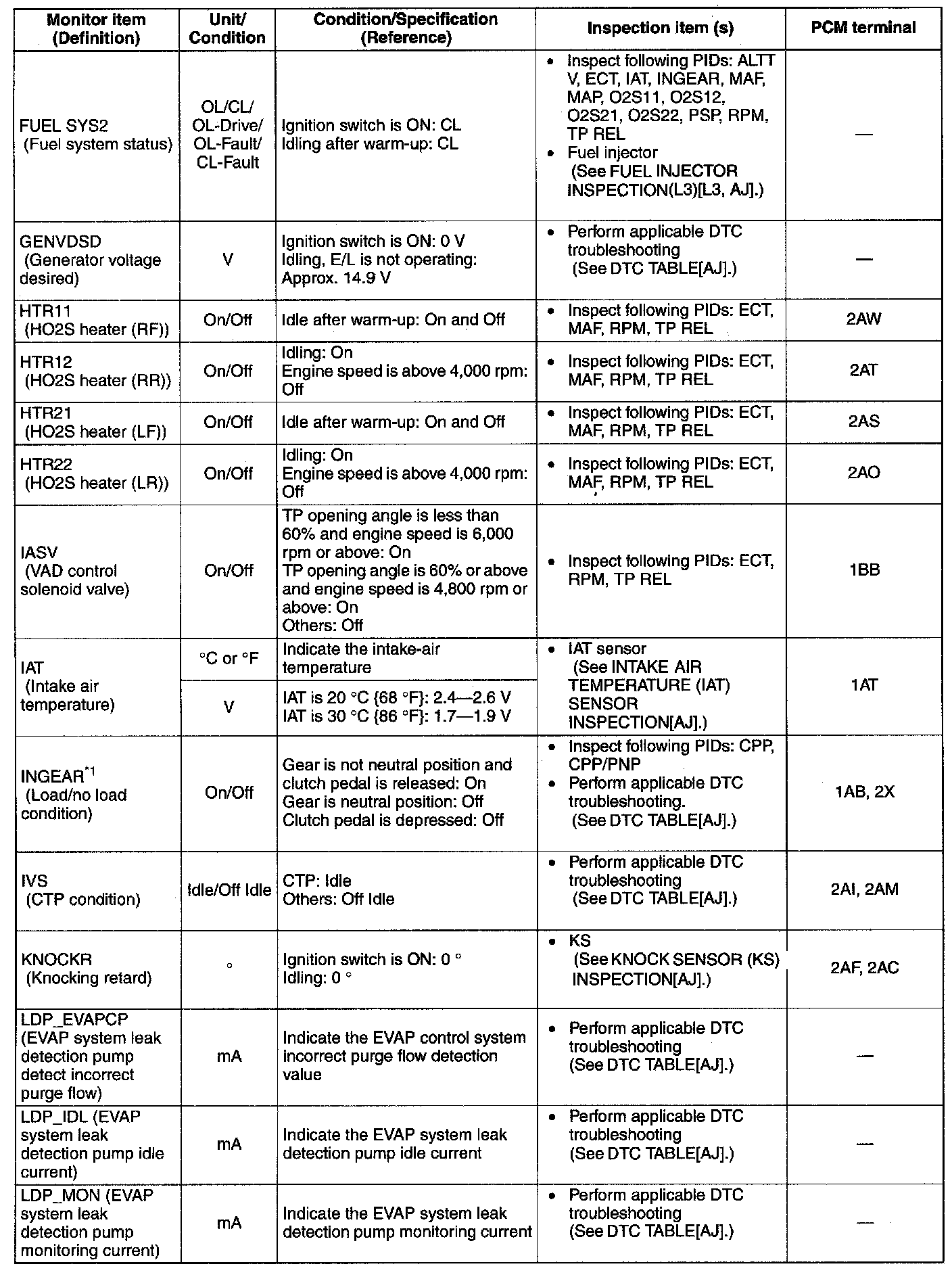 PID/Data Monitor Table(Reference) (Part 1):