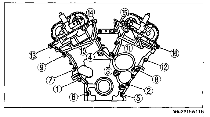Install the remaining bolts and studs, and then tighten all bolts and studs in the order shown.