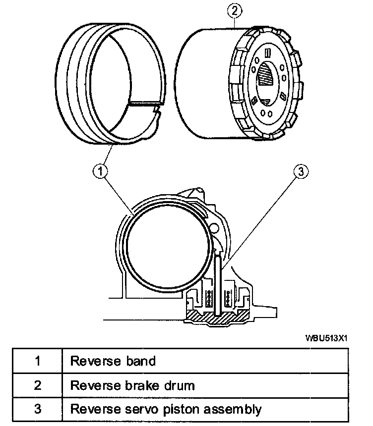 ^ The reverse band holds the reverse brake to the case in 1st position and reverse gears.