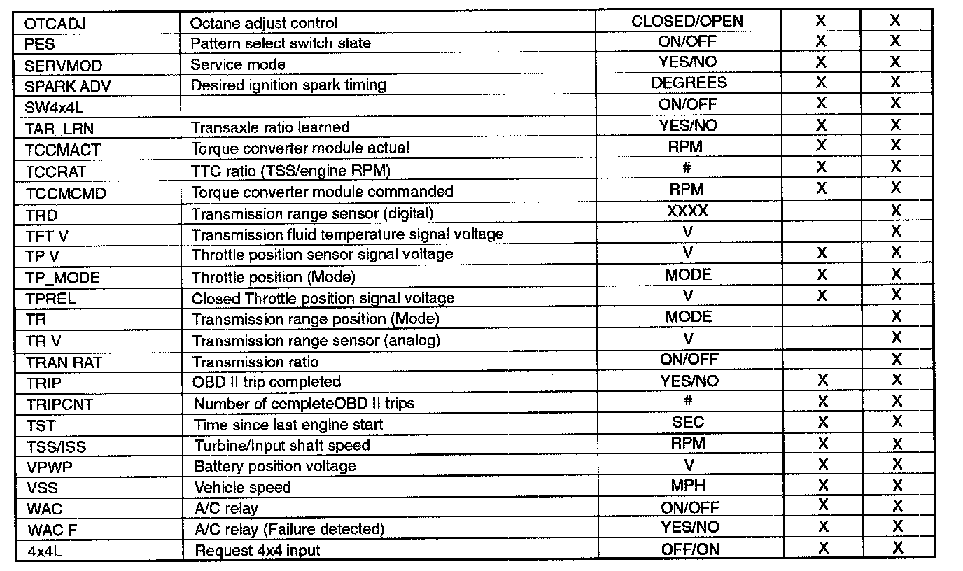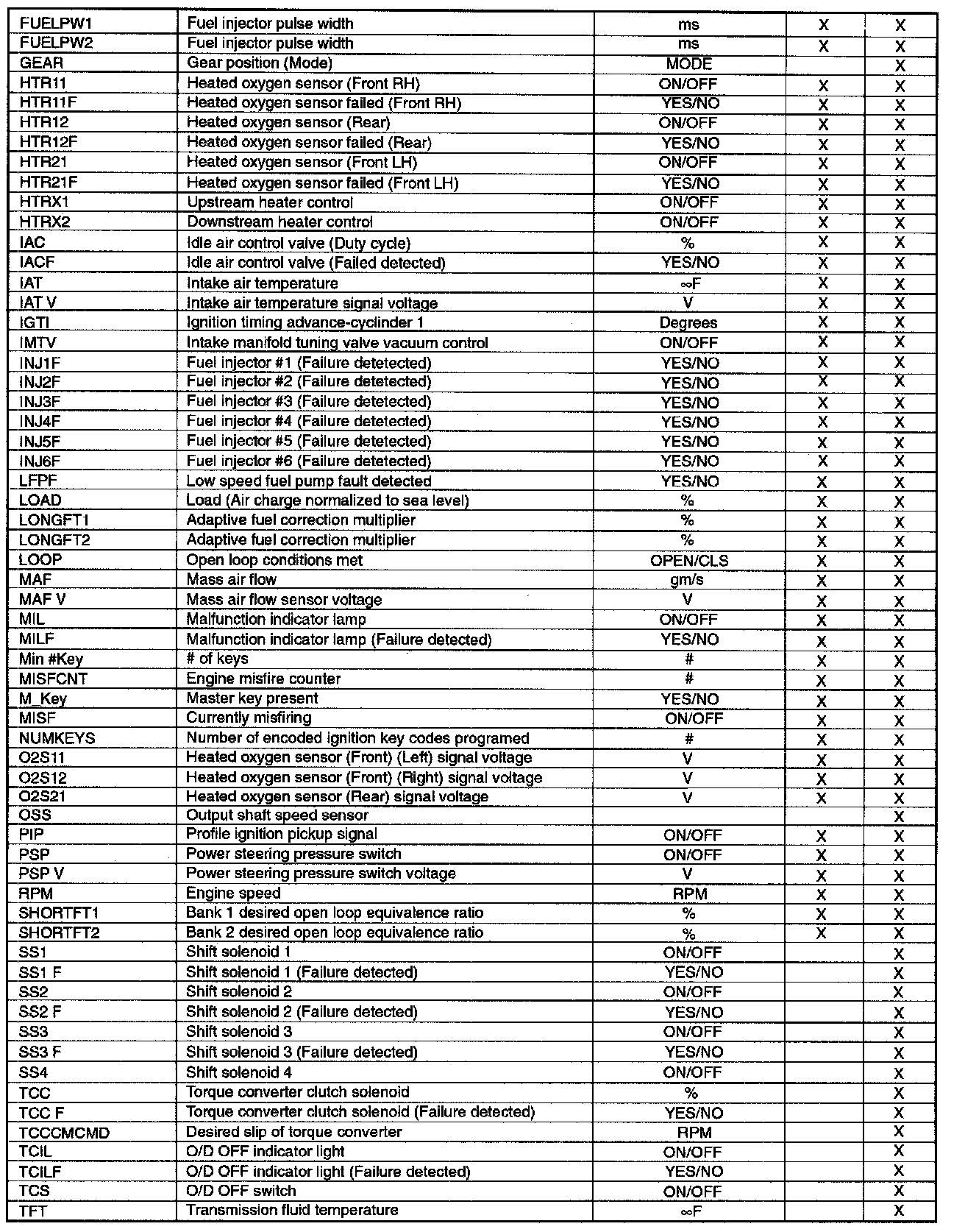 PID/DATA MONITOR ITEM TABLEPID/DATA Monitor Table Part 1: