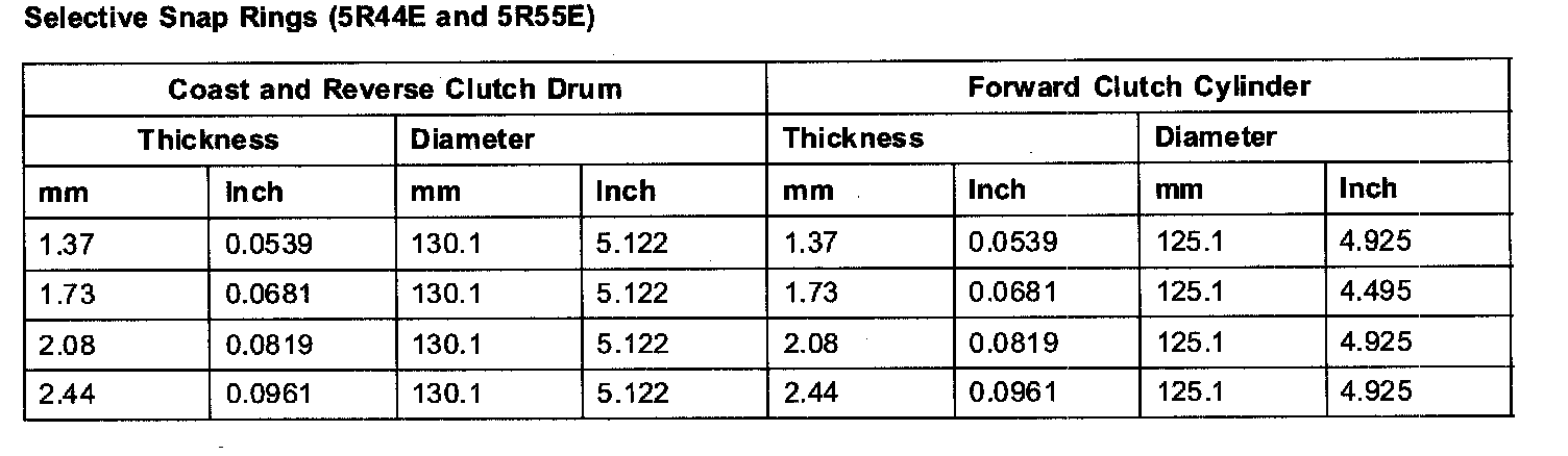 Selective Snap Rings (5R55E 5R44E):