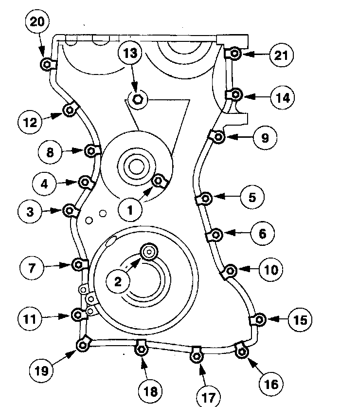 Timing CoverTighten the bolts in the sequence shown, to the following specifications: