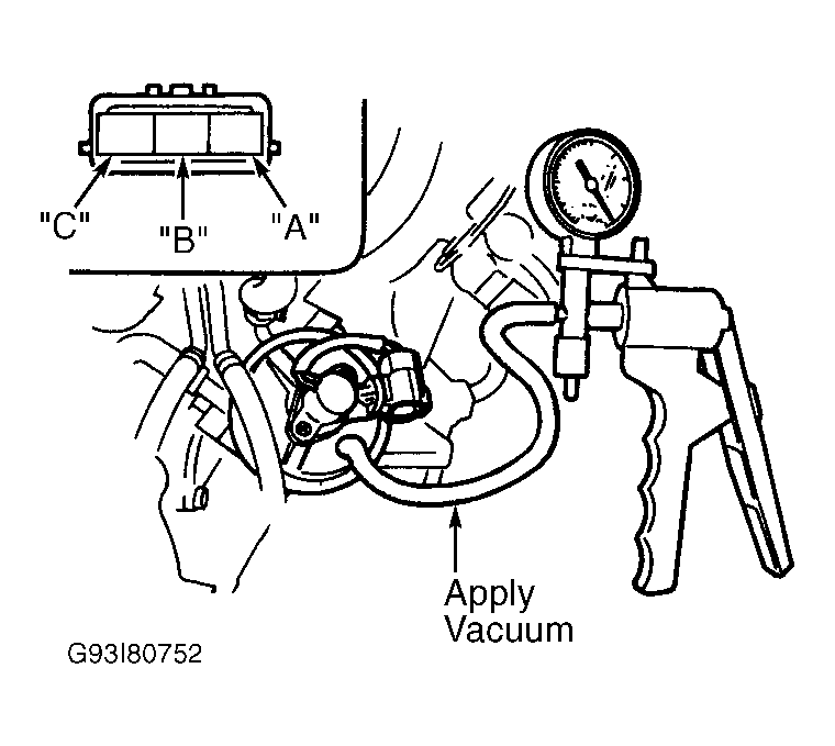 EGR position sensor is part of EGR valve. Disconnect EGR position sensor connector. Disconnect vacuum hose from EGR control valve. While applying vacuum to EGR valve, measure resistance between EGR position sensor terminals. See EGR POSITION SENSOR RESISTANCE SPECIFICATIONS table. See Fig 1 . Apply 5.9 in. Hg of vacuum to EGR position sensor and recheck resistance. If resistance is not as specified, replace EGR valve.