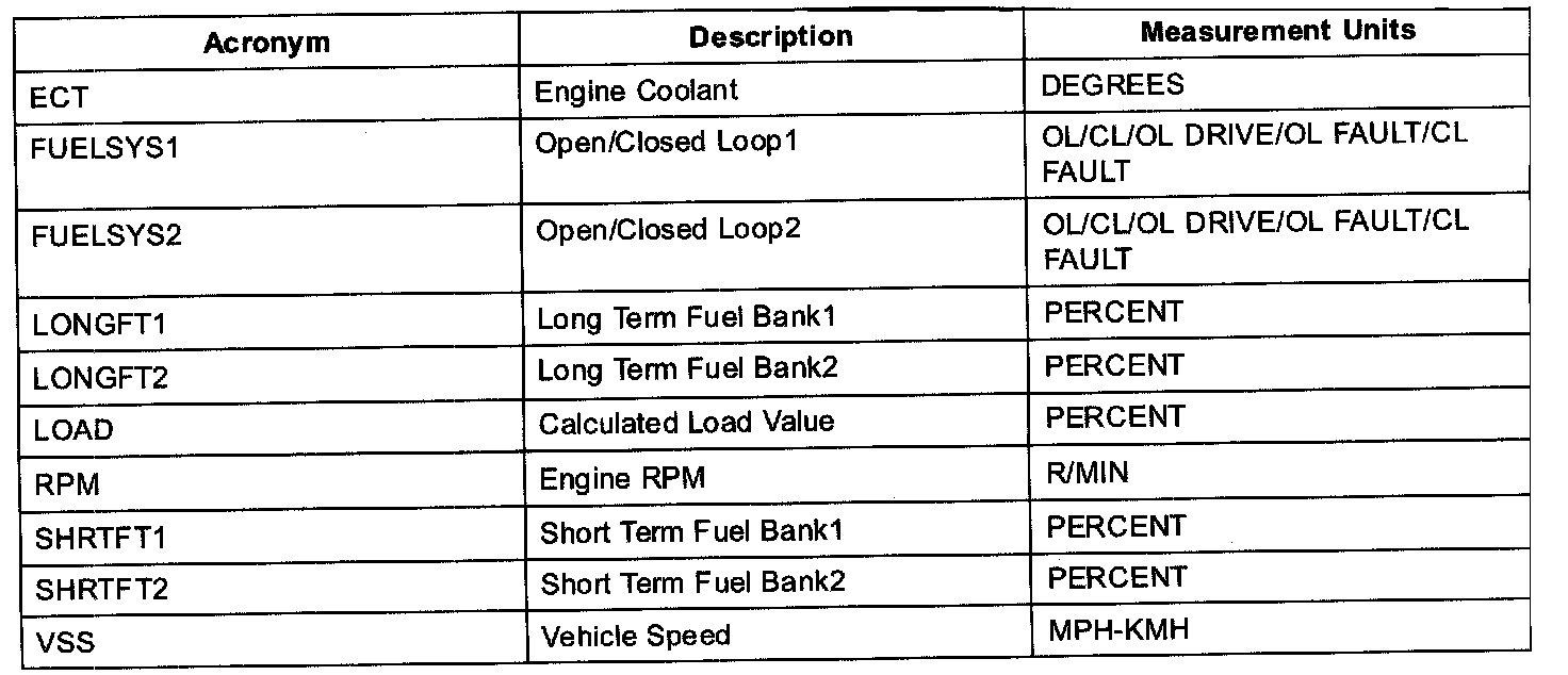 Home >> Mazda >> 2007 >> B3000 V6-3.0L >> Repair and Diagnosis >> Powertrain Management >> Computers and Control Systems >> Testing and Inspection >> Scan Tool Testing and Procedures >> Freeze Frame Data Table