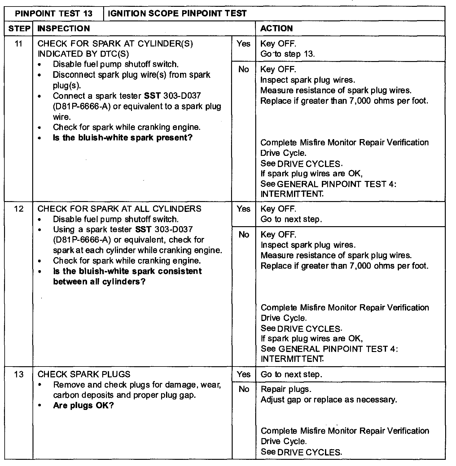 Pinpoint Test 13: Ignition Scope Pinpoint Test
