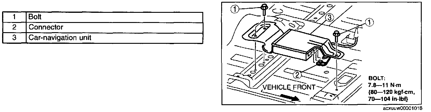 NOTE: Car-navigation unit is located under the front seat (passenger's side).