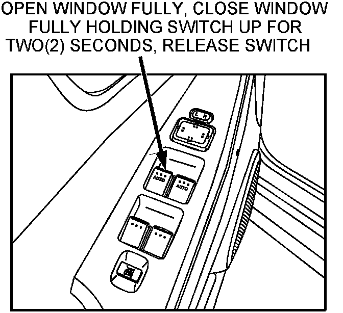 4. Pull window switch up to fully close door window; hold switch up for two (2) seconds; release switch.