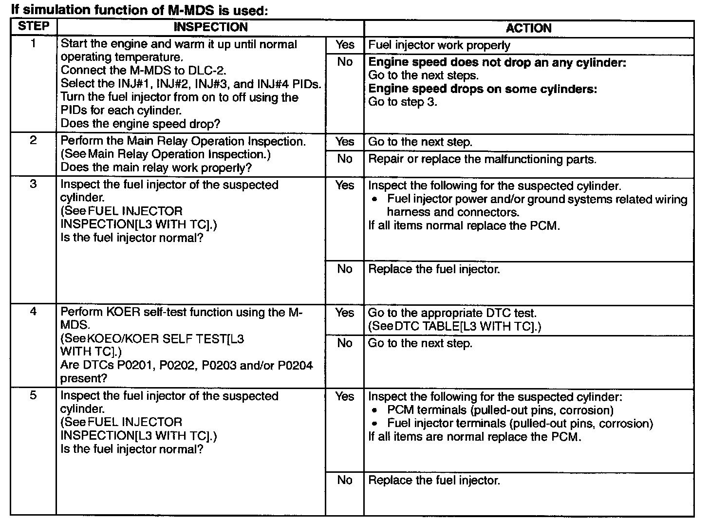 - If DTC No. P2004, P2006, P2009 or P2010 are displayed, perform DTC inspection. (See DTC TABLE[L3 WITH TC].) Diagnostic Trouble Code Descriptions