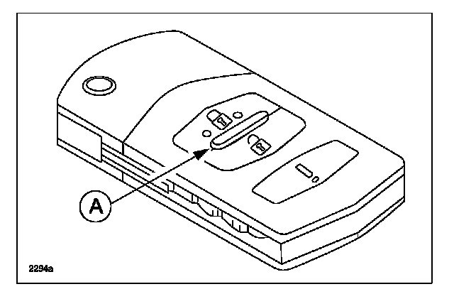 2. Press the "UNLOCK" button on the transmitter and check if the LED (A) on the transmitter illuminates or not.