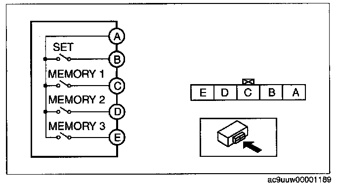 POSITION MEMORY SWITCH INSPECTION1. Disconnect the position memory switch connector.