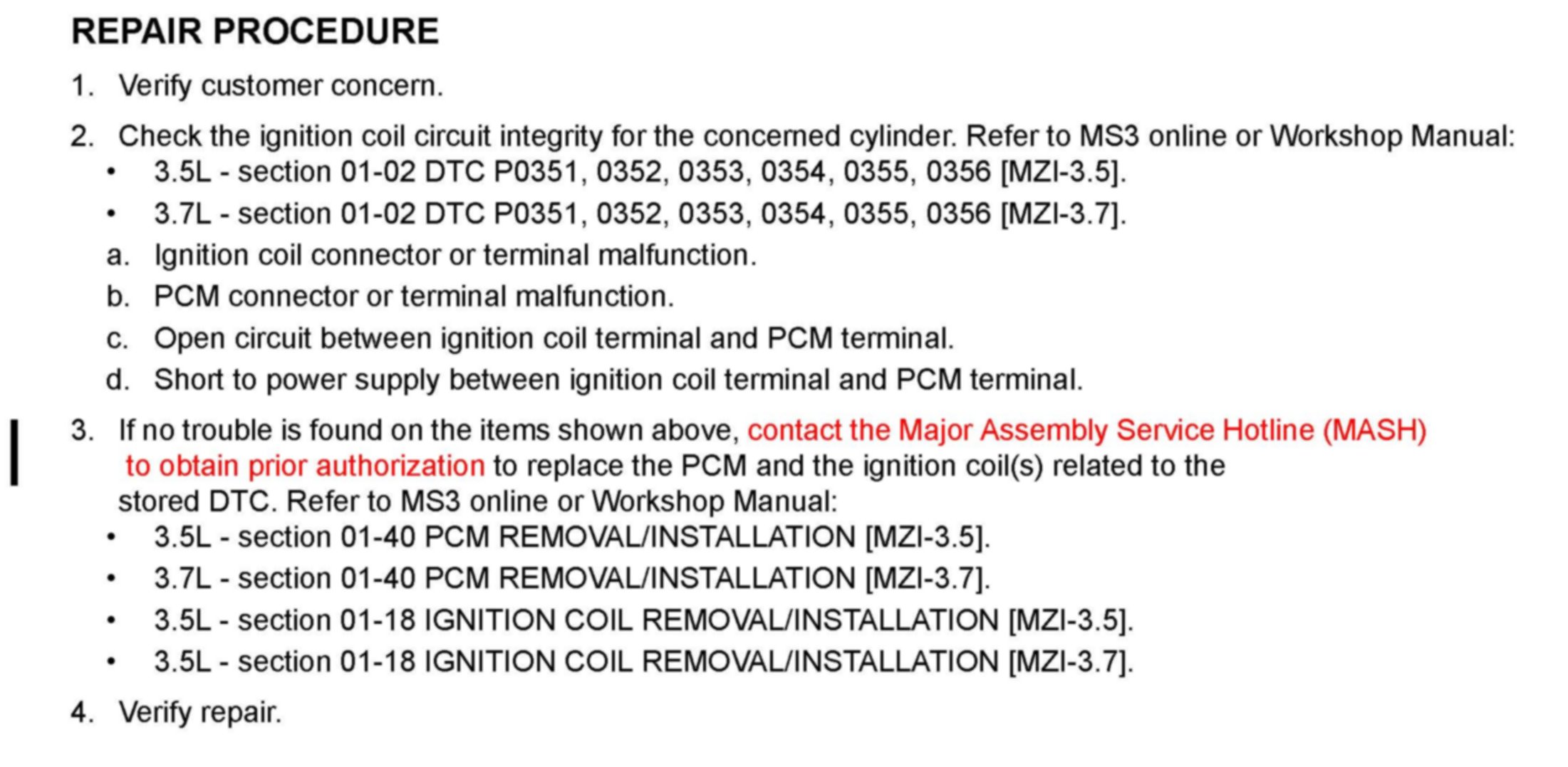 Ignition/Engine Controls - MIL ON/DTCs P0351-P0356