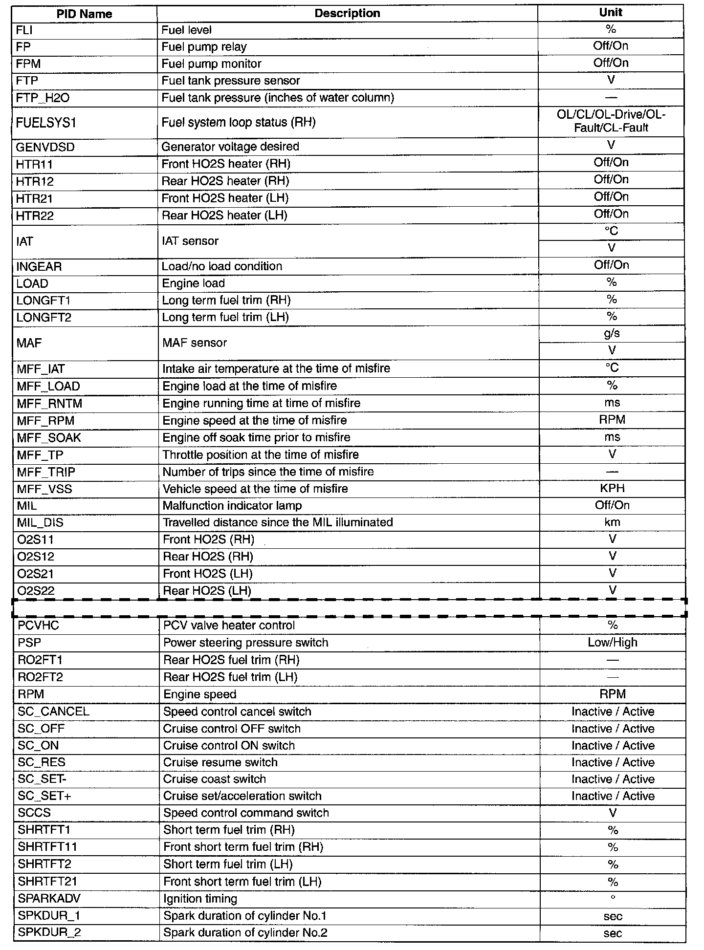 PID/Data Monitor Table Part 1: