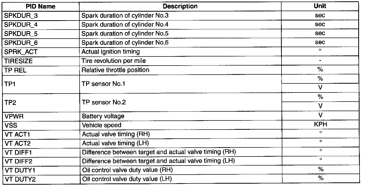 PID/Data Monitor Table Part 2: