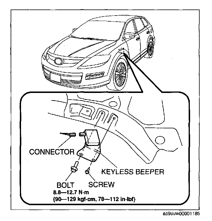 Home >> Mazda >> 2007 >> CX-9 V6-3.5L >> Repair and Diagnosis >> Relays and Modules >> Relays and Modules - Body and Frame >> Keyless Entry Module >> Service and Repair >> Keyless Beeper