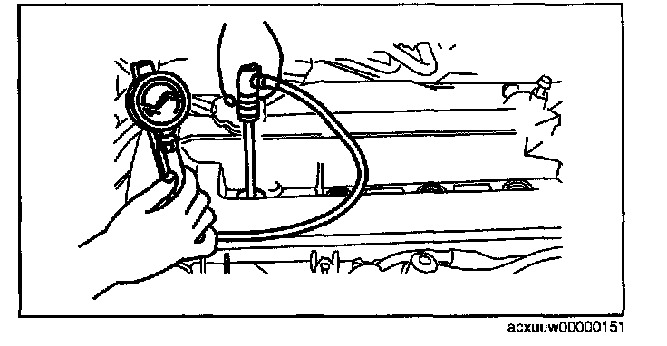^ If the pressure does not increase, valve seizure, valve attachment failure, or pressure leakage from the cylinder head gasket might be occurring. Perform overhaul servicing.