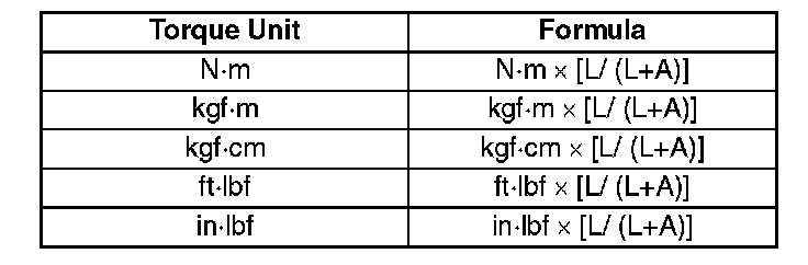 Torque Formulas^ When using a torque wrench-SST or equivalent combination, the written torque must be recalculated due to the extra length that the SST or equivalent adds to the torque wrench. Recalculate the torque by using the following formulas. Choose the formula that applies to you.