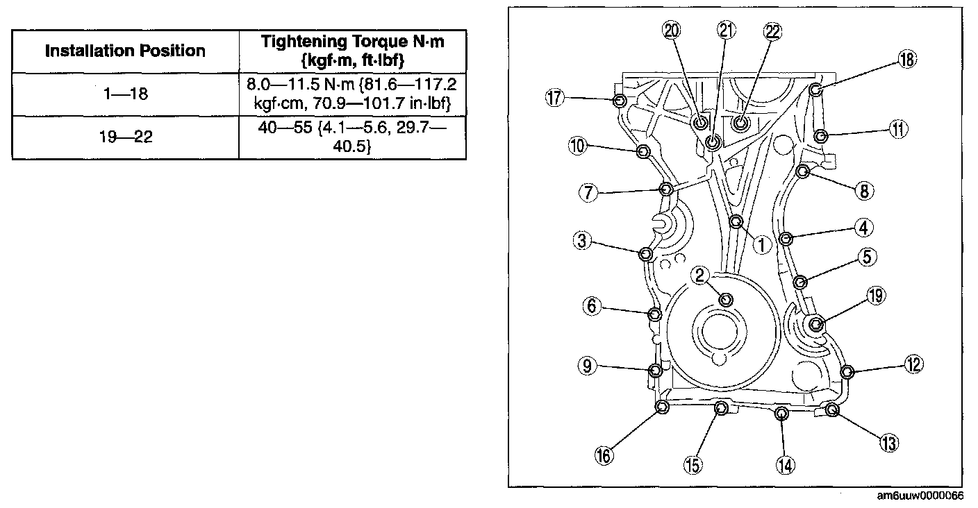 Tighten the engine front cover installation bolts in the order shown in the figure.