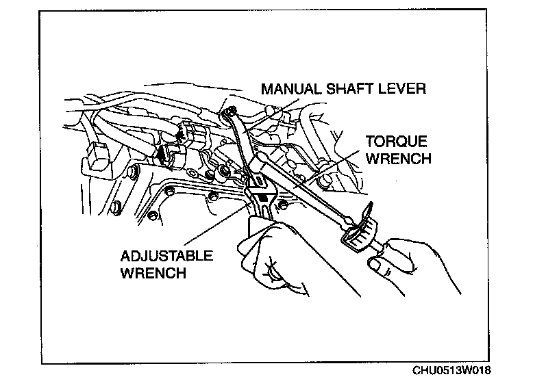 Do not use an impact wrench. Hold the manual shaft lever when removing the manual shaft nut, otherwise the transmission may be damaged.
