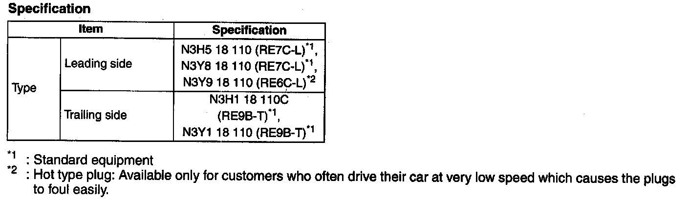 Home >> Mazda >> 2007 >> RX8 2RTR-1.3L >> Repair and Diagnosis >> Powertrain Management >> Ignition System >> Spark Plug >> Specifications >> Mechanical Specifications