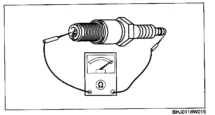 1. Measure the resistance of the spark plug using a tester as shown in the figure.