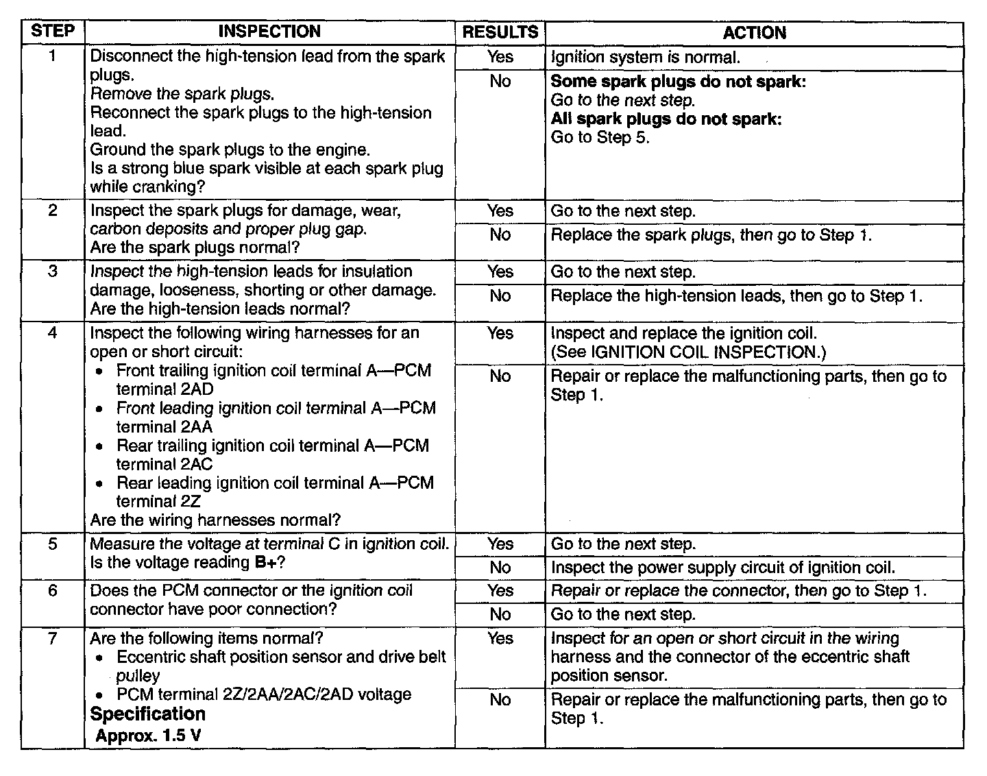 Home >> Mazda >> 2007 >> RX8 2RTR-1.3L >> Repair and Diagnosis >> Powertrain Management >> Ignition System >> Testing and Inspection
