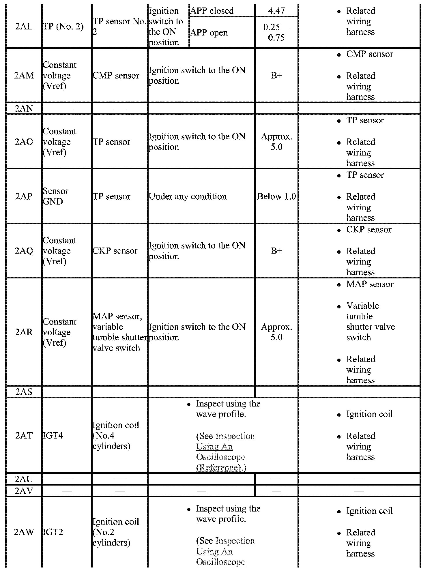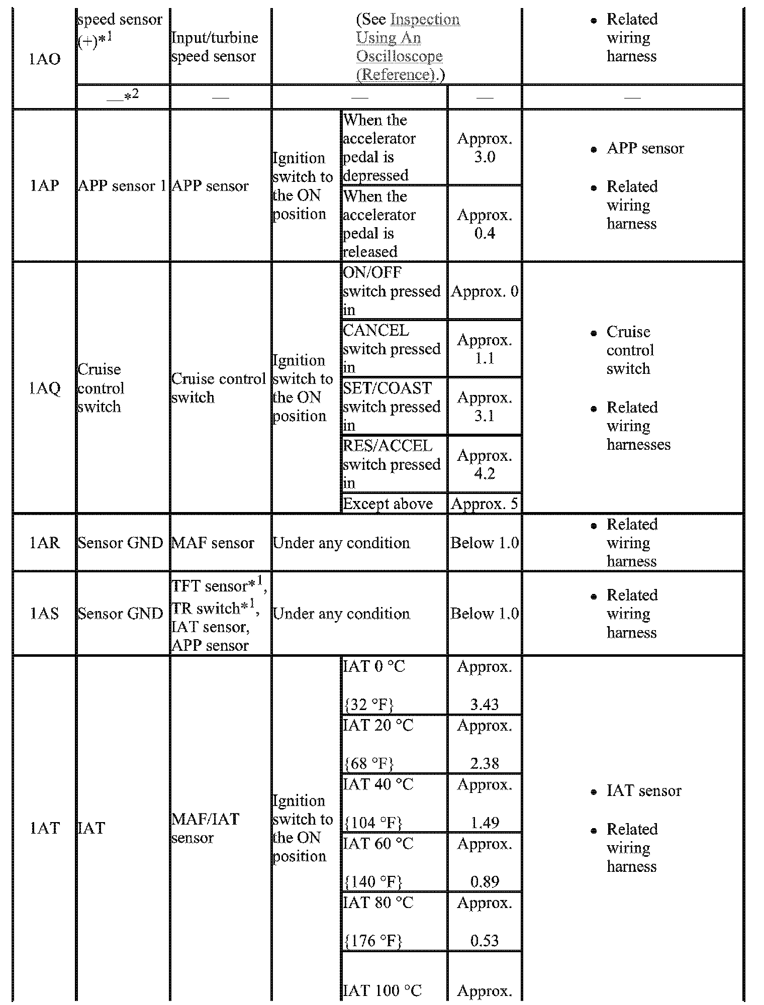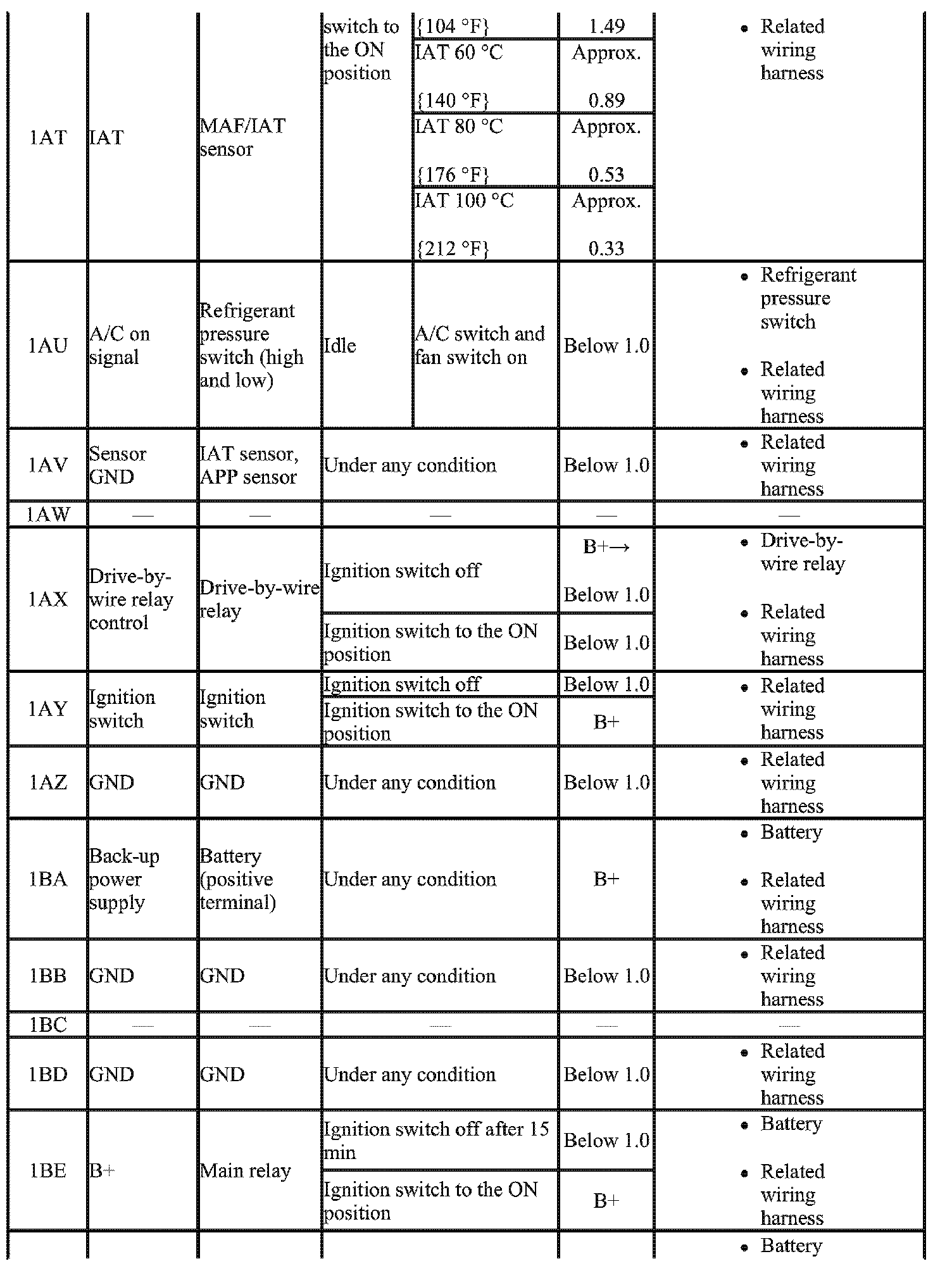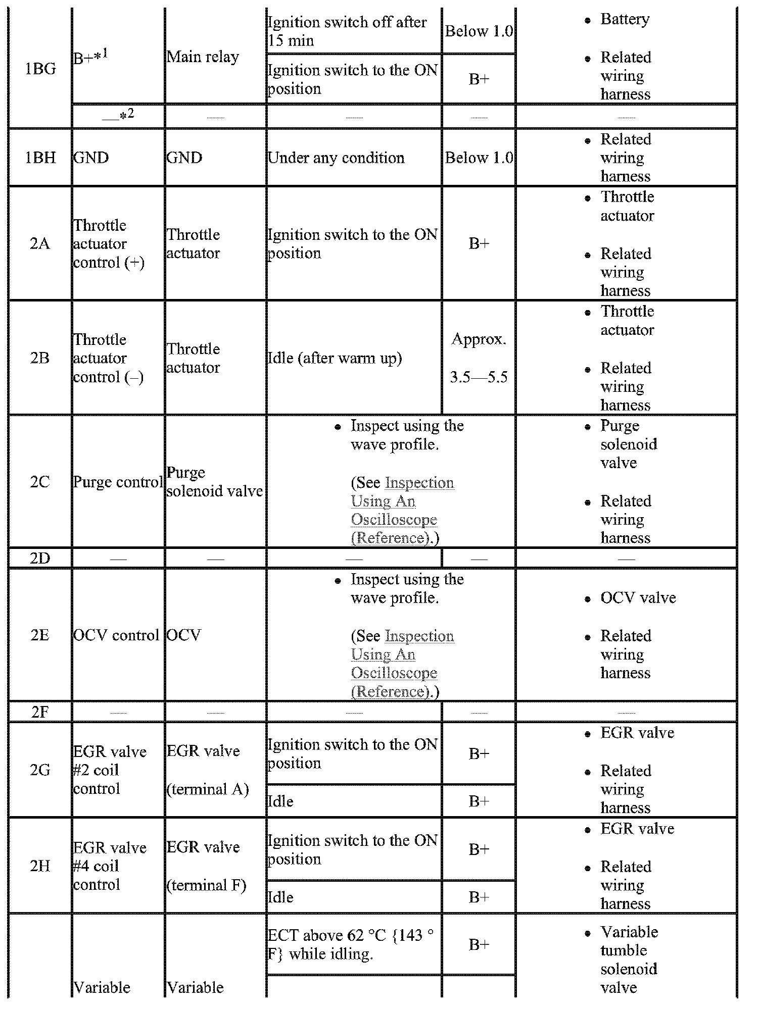 - The PCM terminal voltage can vary with the conditions when measuring and changes due to aged deterioration on the vehicle, causing false diagnosis. Therefore determine comprehensively where the malfunction occurs among the input systems, output systems, and the PCM.