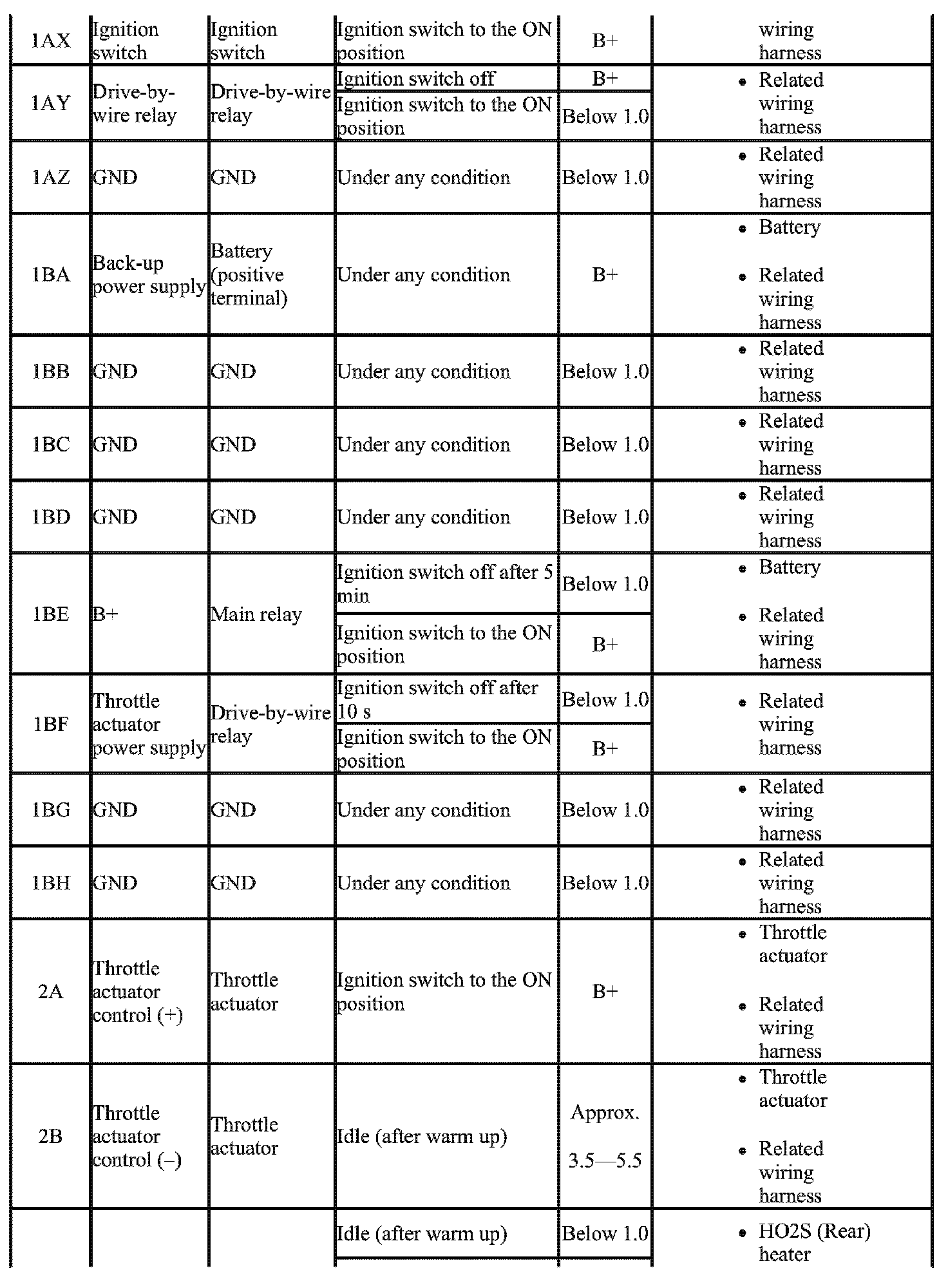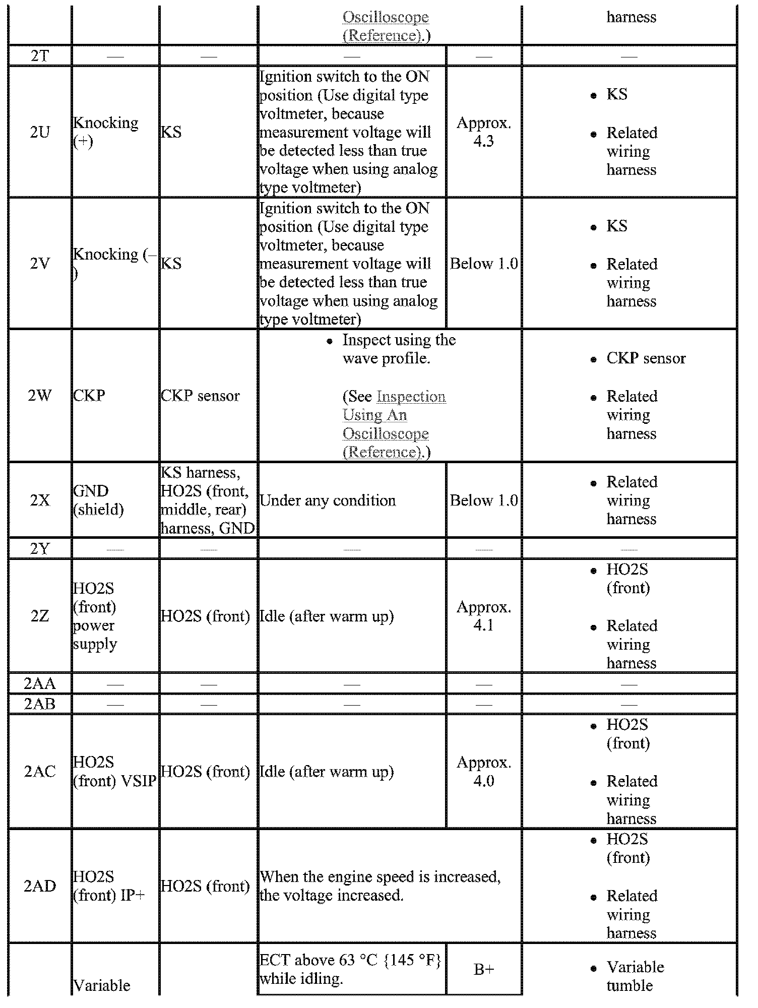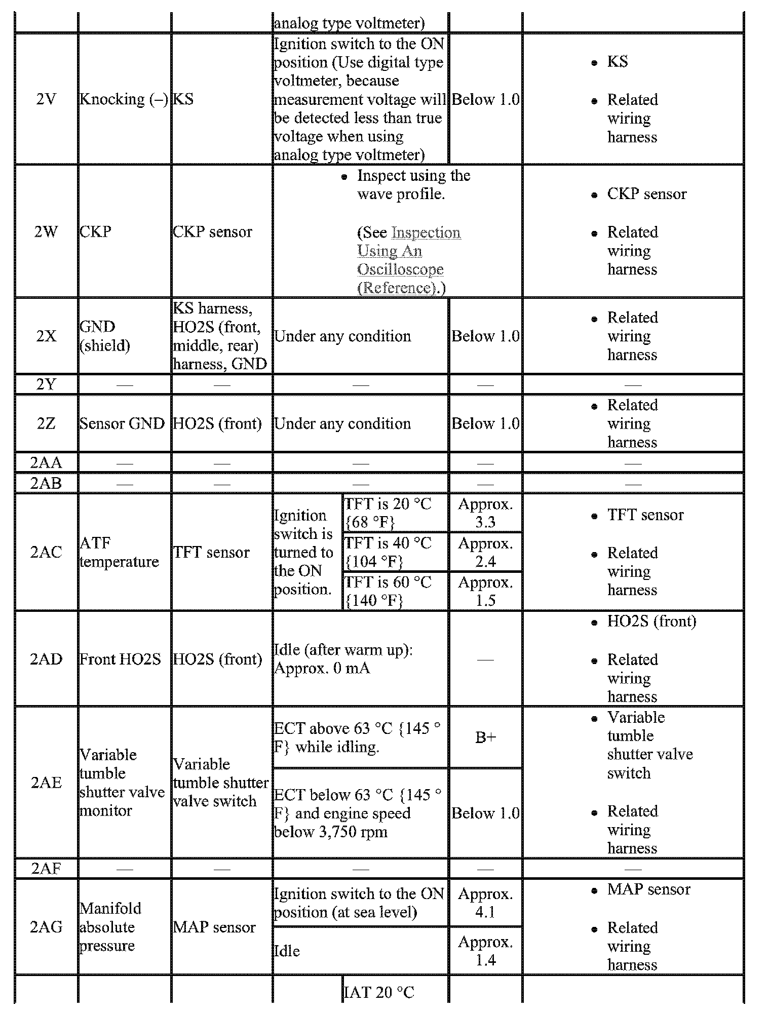 - The PCM terminal voltage can vary with the conditions when measuring and changes due to aged deterioration on the vehicle, causing false diagnosis. Therefore determine comprehensively where the malfunction occurs among the input systems, output Systems, and the PCM.