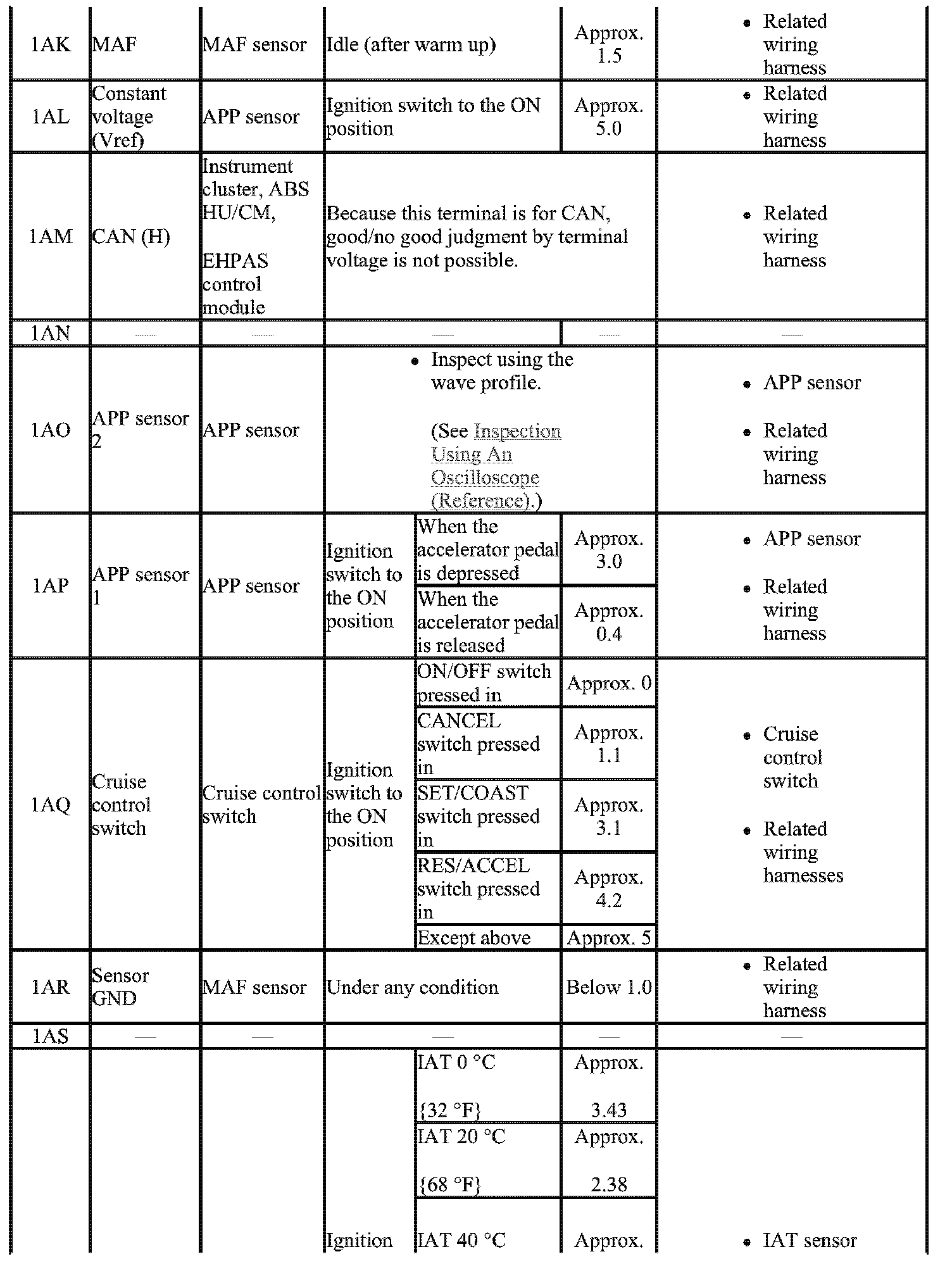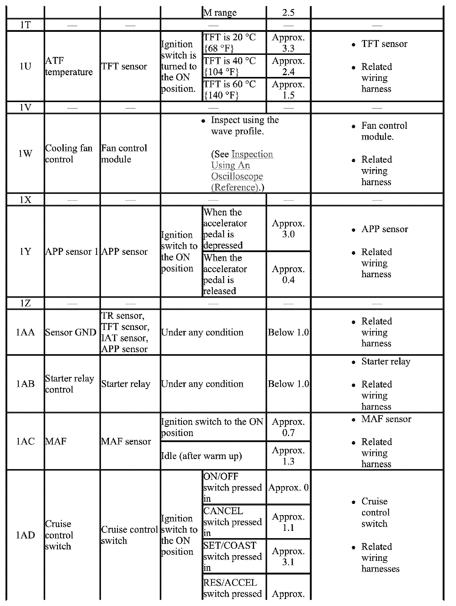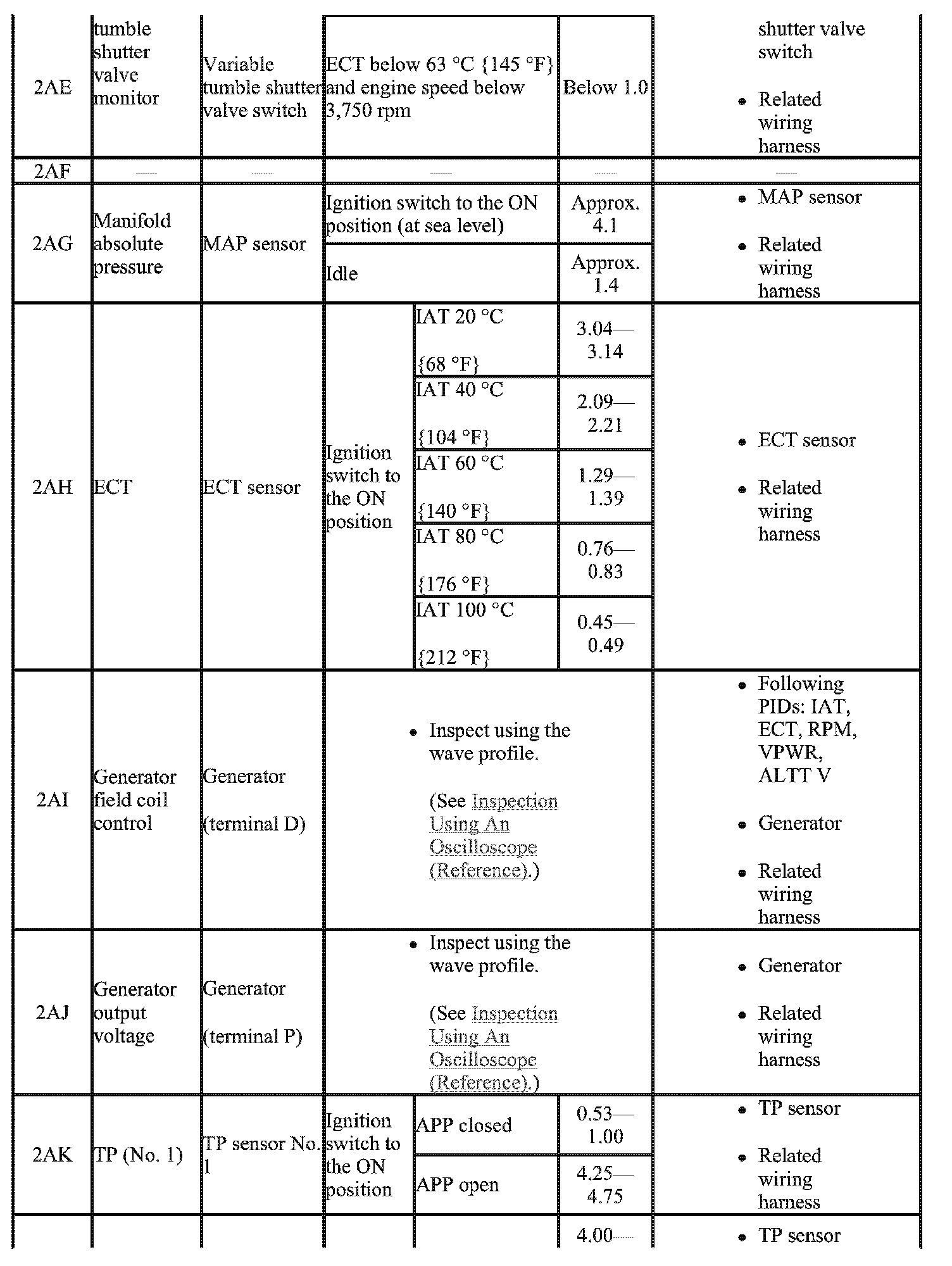 - The PCM terminal voltage can vary with the conditions when measuring and changes due to aged deterioration on the vehicle, causing false diagnosis. Therefore determine comprehensively where the malfunction occurs among the input systems, output Systems, and the PCM.