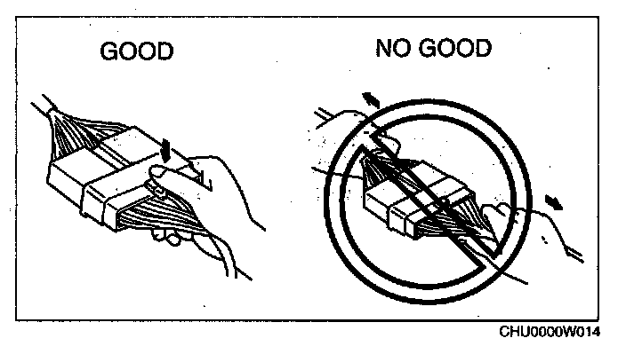 - When disconnecting connector, grasp the connectors, not the wires.