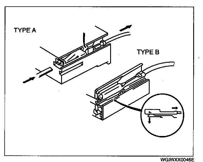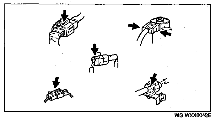 - Inspect the terminals of waterproof connectors from the connector side since they cannot be accessed from the wiring harness side.