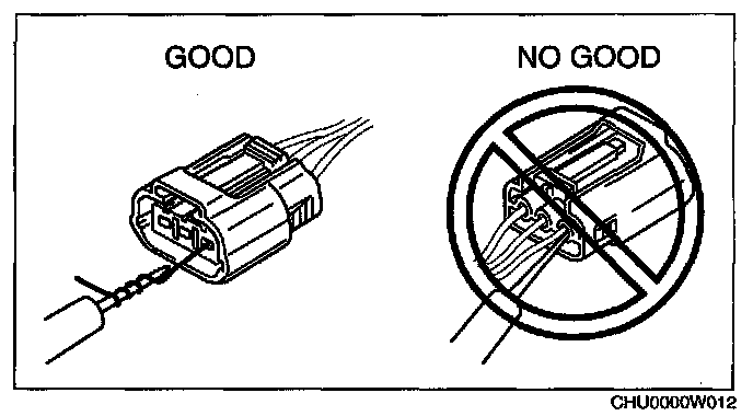 CAUTION: To prevent damage to the terminal, wrap a thin wire around the tester probe before inserting into terminal.