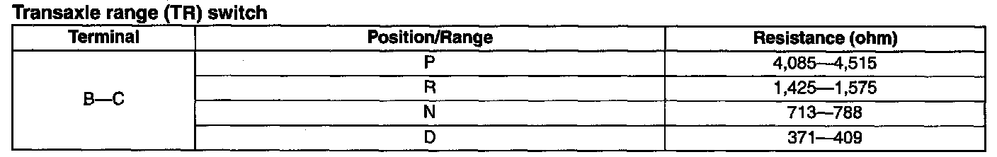 Transaxle Range (TR) Switch: