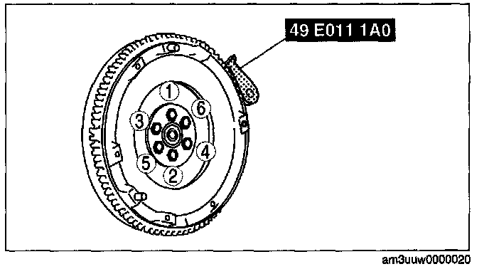 Gradually tighten the flywheel look bolts or dual-mass flywheel lock bolts in a crisscross pattern.